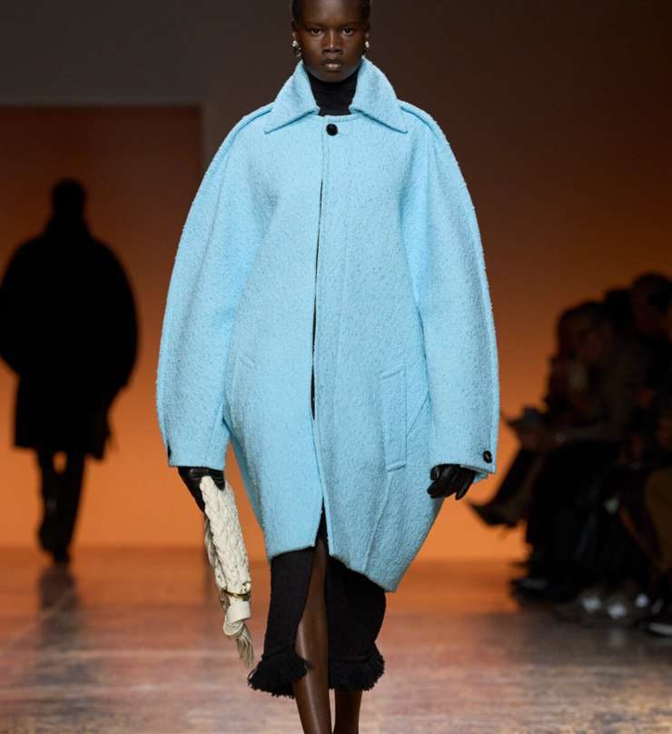 Это все тот же объемный верх, слегка суженный низ, линия падает мягкой дугой. Силуэт комфортный и современный, особенно в длине миди. «Балансируйте объем приталенным или узким низом — джинсы скинни, плотные леггинсы, юбка-карандаш и сапоги с высоким голенищем. Внутри держите гладкий верх: тонкая водолазка, шелковистая блуза, хлопковый лонгслив. Кокон любит фактуру, это букле, вареная шерсть, плотный твид. Цвета можно выбрать более смелые — вино, изумруд, сливовый», — говорит стилист.