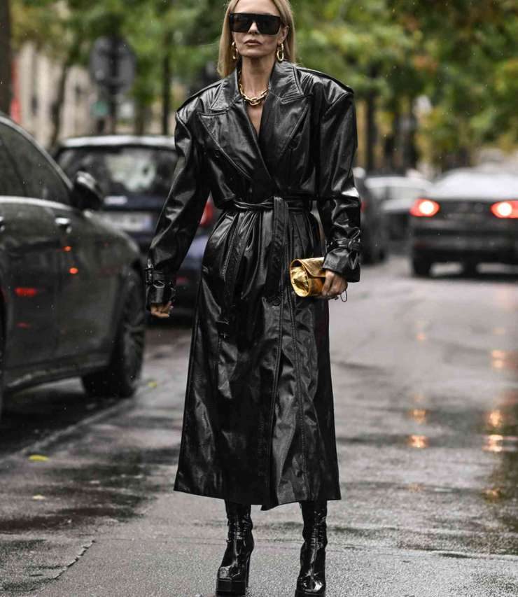 Узнаем его так: гладкая фактура, ровный блеск, длина ниже колена, крой от прямого до слегка приталенного. Силуэт делает образ современным и добавляет графики. Играйте на контрасте фактур: мягкий кашемировый шарф, вязаная шапка, замшевые ботильоны. Внутри поддержите графику базой — это могут быть черные джинсы, белая футболка, серый свитер. Если хочется цвета, выбирайте глубокие оттенки — бордо, темно-зеленый, шоколад.