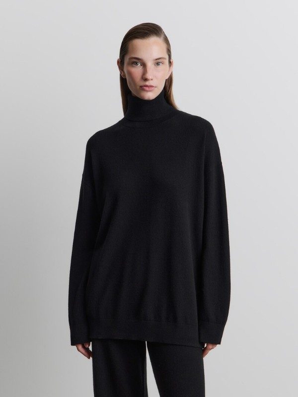 Свитер из хорошей ткани с шерстью и кашемиром может стать основой для любой капсулы на целых 3 сезона. При правильном уходе он не будет скатываться, останется мягким и сделает любой образ дороже – в такую вещь точно стоит вложиться. В этом случае не стоит смотреть в сторону трендов, а выбрать базовый крой, слегка удлиненный, с классическим вырезом или высоким воротом. Такой свитер можно будет носить с чем угодно – яркими юбками, майками, джинсами и накидывать на плечи, завязывая красивым узлом, когда температура поднимется до уверенных +15.
