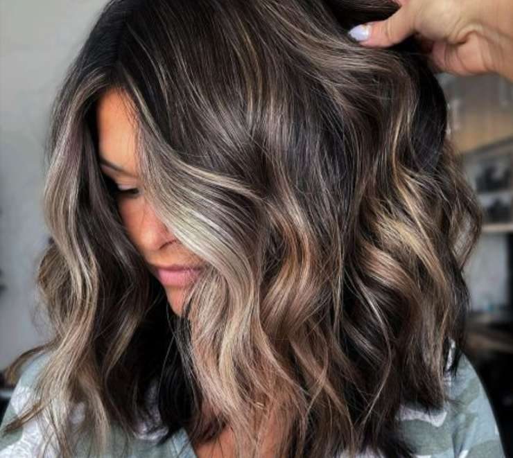 Эта техника строится на тонких затемненных прядях в нижнем объеме и более светлой длине. Волосы выглядят гуще, а цвет — многослойным и спокойным. Такой прием удобен тем, что отрастает красиво и подходит тем, кто не готов к частым окрашиваниям.