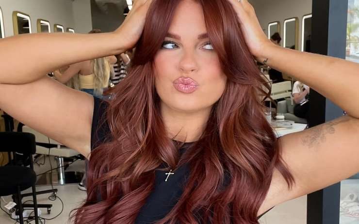Глубокий каштан с вишневыми полутонами делает темные волосы выразительнее, подчеркивает глаза и придает коже теплое сияние. Цвет работает на средних и длинных стрижках, красиво раскрывается на волнах и в гладких укладках. Лучше всего выглядит там, где у корней чуть темнее, а по длине — мягкий перелив без резких границ.