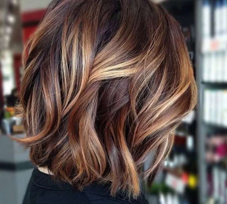 Теплый брюнет с карамельными прядями у лица