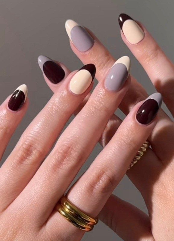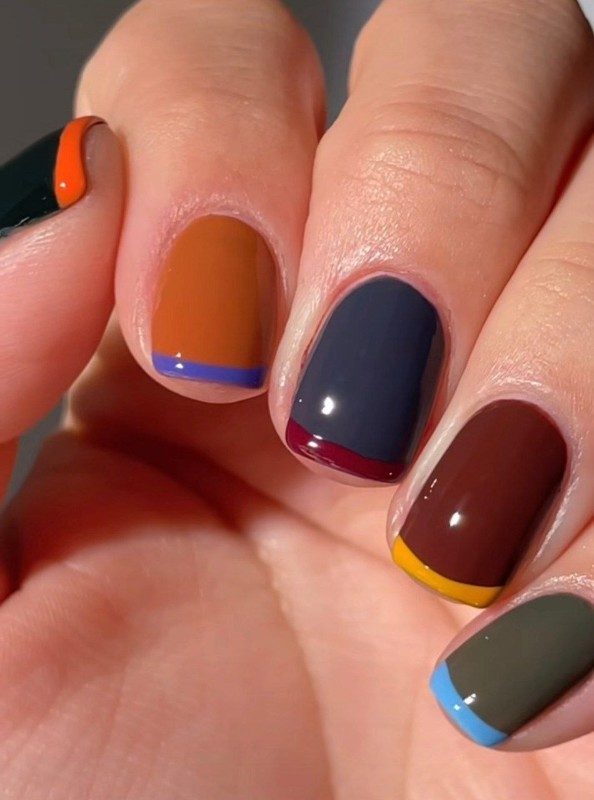 Зачем ограничиваться одним или двумя цветами, когда можно собрать на ногтях всю осеннюю палитру? Попробуйте накрасить каждый кончик ногтя по-разному, используя модные цвета осени – бордовый, сливовый, шоколадный, пыльно-лавандовый.