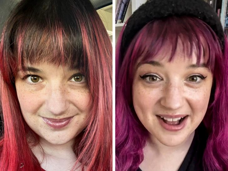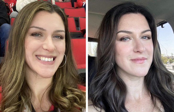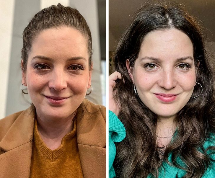 «До и после определения моего цветотипа. Мой тип — „Осень“. Эти фотографии сделаны с разницей в 40 минут. Чувствую себя куда здоровее»