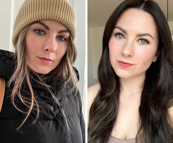 «До и после того, как я наконец-то определила свой цветотип — яркая зима!»