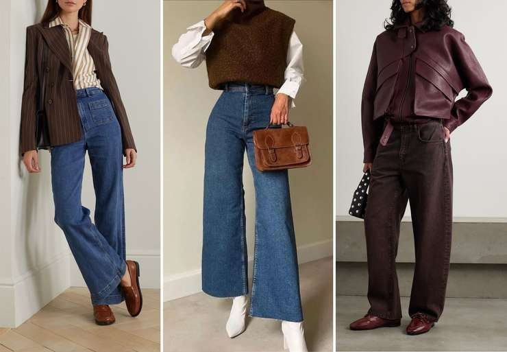 Деним «под брюки»: плотная ткань, возможны стрелки, аккуратный пояс. Это офисная версия широких джинсов — выглядит строже, чем классика, но сохраняет комфорт.