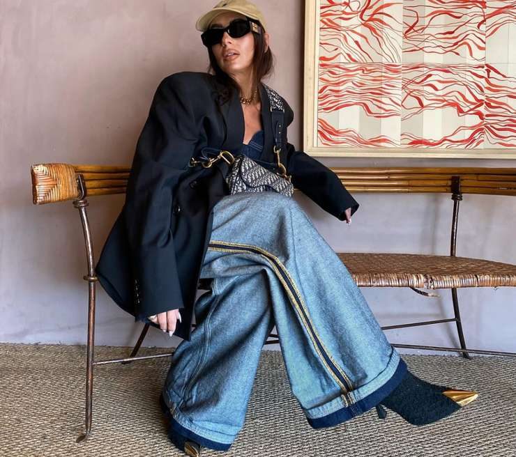 «Главное — не превращать все в диско-шар: одного металлического акцента достаточно, чтобы синий зазвучал ярче и современнее. Еще один работающий ход — прозрачные элементы: стеклянные кабошоны в украшениях, сумки с глянцевой вставкой, очки с кристально чистыми линзами. Такой „стеклянный“ блеск добавляет синему глубину, не споря с цветом», — утверждает стилист.