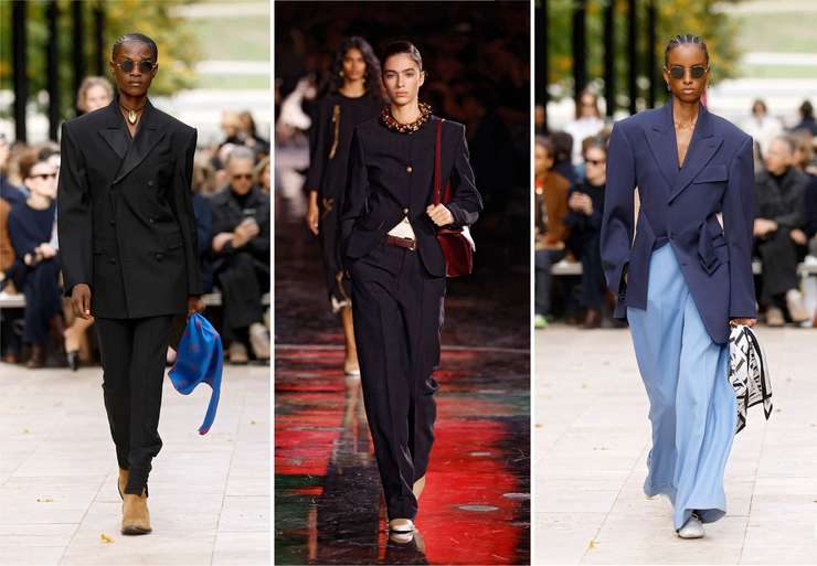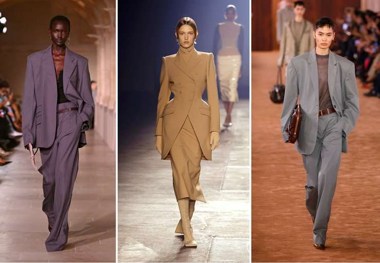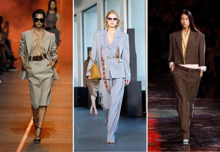 Костюм больше не про «офисные правила». В осенне-зимнем сезоне 2025 он говорит о свободе и игре: тот же жакет, те же брюки или юбка — но жесты другие. Рукава чуть длиннее обычного, борт идет чистой линией, ткань мягко поддается движению. В коллекциях — пояса, которые перехватывают талию поверх пиджака, укороченные жакеты, сатин без крика. В жизни — двойки, которые легко приспосабливаются к вашему дню: от утреннего кофе до вечерней галереи.