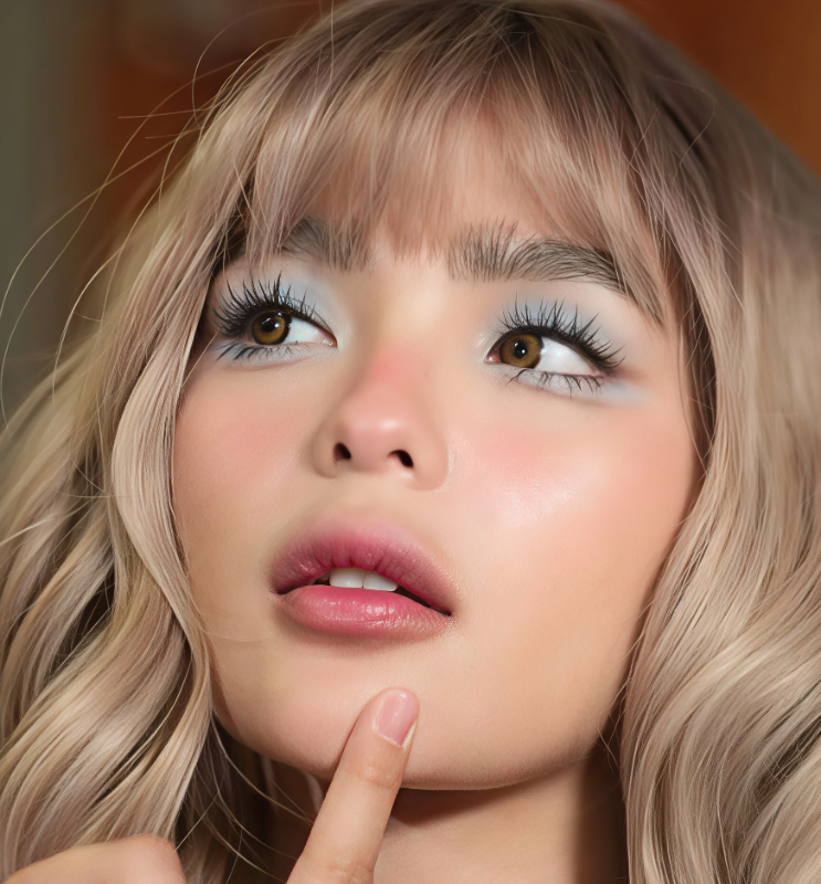Образ с ресницами, нетронутыми тушью, выглядит очень воздушно и нежно. Это идеальный вариант для тех, кто боится, что голубые тени визуально прибавляют возраст.