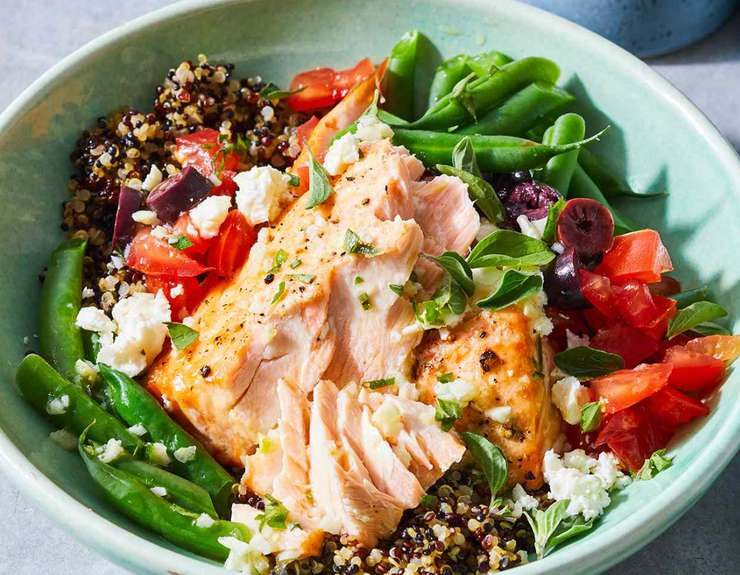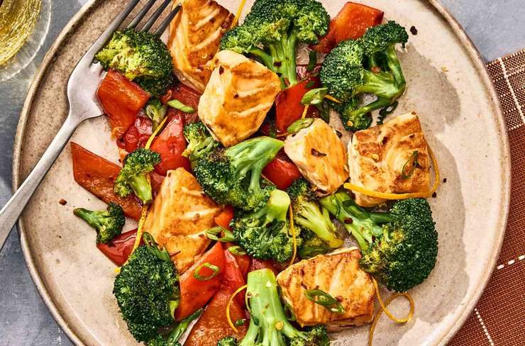 Белок на вечер удерживает сахар крови в ровном коридоре, снижает ночные перекусы и защищает мышечную массу, которая с возрастом теряется быстрее. «На тарелке должна быть ладонь готового белка и половина тарелки некрахмалистых овощей. Подойдут рыба, индейка, яйца, творог, тофу, а из овощей — брокколи, цветная капуста, кабачок, огурец, салаты, шпинат. Пример простого ужина — запеченный лосось с лимоном и теплый салат из брокколи с оливковым маслом. Если хочется сытнее, добавьте немного киноа или кусочек цельнозернового хлеба, но не делайте их основой тарелки», — предлагает эксперт.