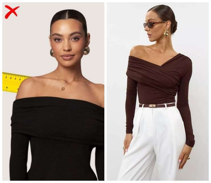Эта часть тела является ярким элементом фигуры, который оказывает большое влияние на общее восприятие пропорций тела. Мягкие, струящиеся фактуры создадут для плечевых изделий плавные линии силуэта. Идеально, если они будут однотонными. Например, шелк или трикотаж.