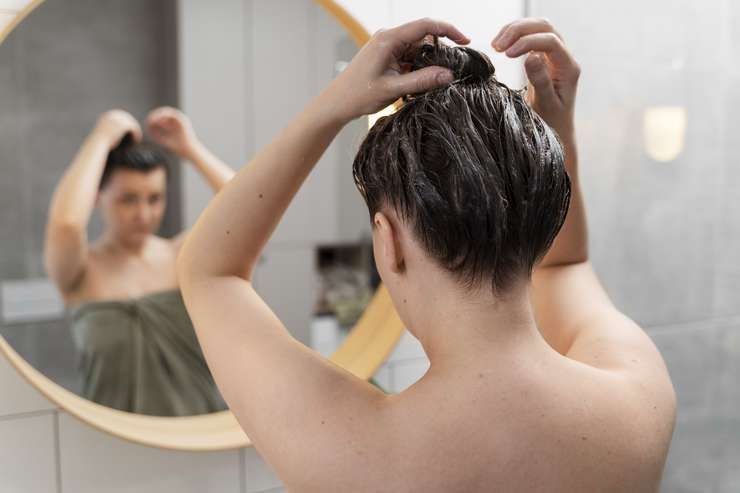 «Если волосы сильно пористые, можно попробовать смывать маску сразу прохладной водой, комнатной температуры. Особенно это хорошо для липидных масок и средств с содержанием аминокислот. Как я уже говорила, эти компоненты чувствительные к высоким температурам и часть из них остается внутри волоса при мытье. Если вода будет прохладная, то полезных компонентов задержится больше», — говорит эксперт.