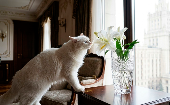 Самое коварное в лилиях то, что коту даже не обязательно их жевать. Достаточно просто пройти мимо и испачкать шубку осыпавшейся пыльцой. В процессе вечернего умывания кот слижет её с шерсти — и этого микроскопического количества хватит, чтобы вызвать острую почечную недостаточность. Вода из-под лилий в вазе тоже становится токсичной, так что один глоток из «запретного источника» может привести к фатальным последствиям. Если вы знаете, что в доме есть кот, забудьте о лилиях навсегда. Это тот случай, когда риск не оправдан ни капли.