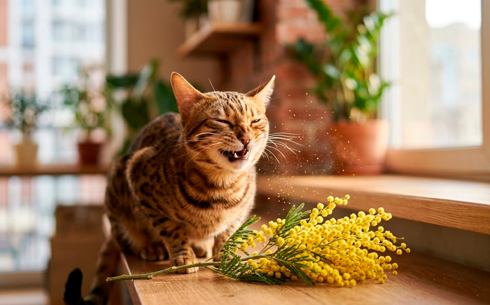 Мимоза, которую так любят дарить за её нежный вид, — это мощный источник пыльцы, вызывающий у кошек сильное раздражение слизистых. У пушистых «аллергиков» от контакта с мимозой могут начать слезиться глаза или возникнуть проблемы с пищеварением. Вроде бы не смертельно, но праздник будет бесповоротно испорчен и для питомца, и для его владельцев.