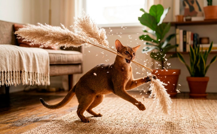 Мода на сухоцветы принесла в наши дома новые риски. Казалось бы, засушенные растения не выделяют сок и не имеют пыльцы. Но коты воспринимают их как идеальную шуршащую игрушку.