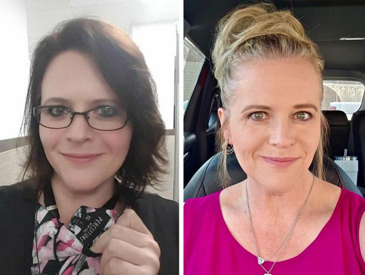 «На первом фото мне 41, а на втором 50. Сейчас я блондинка»