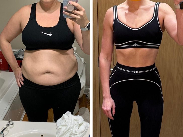 «На первом фото мне 50, а на втором 53. Решила вести здоровый образ жизни. Занимаюсь спортом и слежу за питанием»