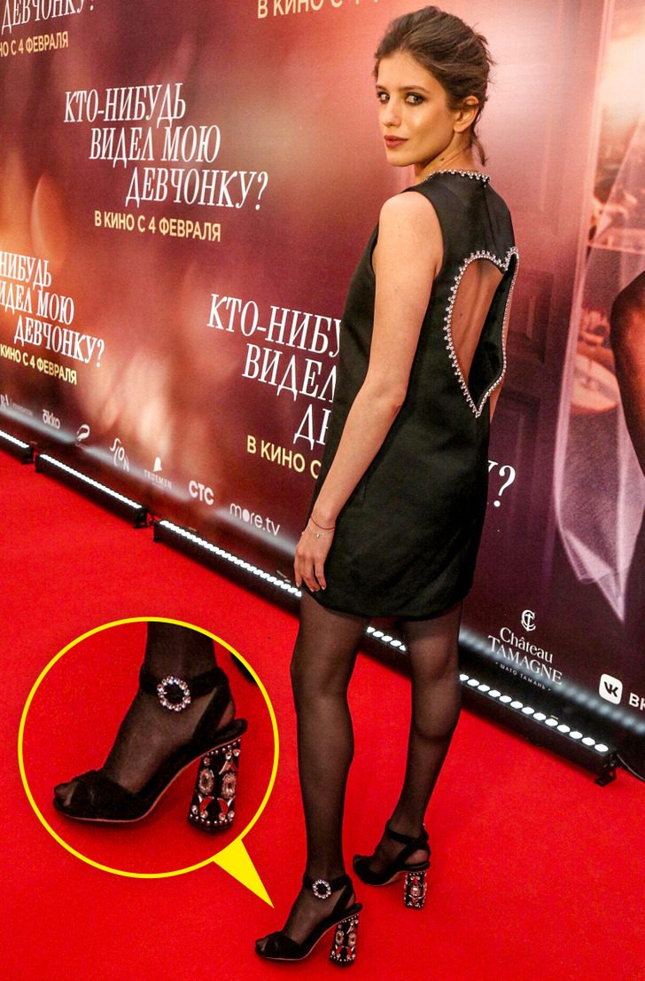 Маленькое черное платье и акцентные босоножки выбрала Анна Чиповская для премьерного показа