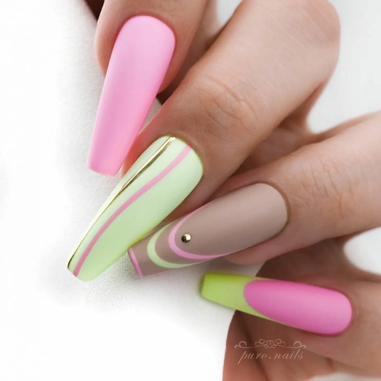 Прямые линии, геометрические фигуры и зигзаги — всё это добавит динамичности и современности вашему маникюру.