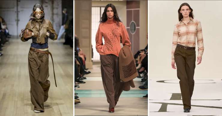 Земляные оттенки денима — главный неожиданный цветовой поворот сезона. Коричневые, кофейные, сливочные и оттенки какао вытесняют привычный индиго. Такие джинсы выглядят благородно, особенно в сочетании с шерстяными пальто и кашемировыми свитерами. Коричневый деним гармонично сочетается с обувью теплых оттенков — карамель, коньяк, бордо. Но если хочется контраста, попробуйте белые сапоги или светлые ботинки: на фоне шоколадных джинсов они выглядят особенно эффектно. Ну и, конечно, уместна классика — все оттенки синего или винного для обуви.