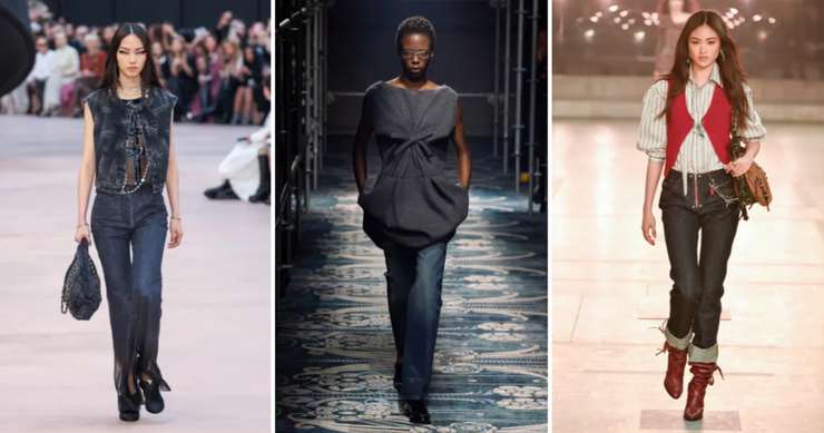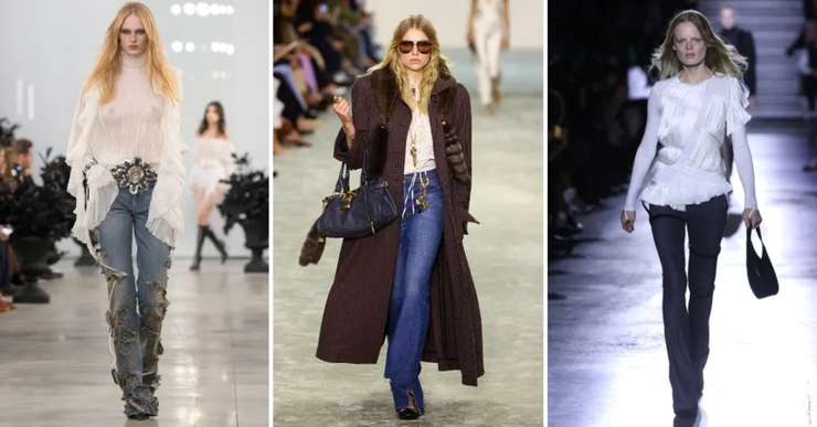 После минимализма последних лет дизайнеры снова играют с украшениями. Джинсы с пайетками, стразами, нашивками и перфорацией возвращаются — но теперь без кричащей вычурности, а с тонким чувством меры. Это способ добавить блеска в серые зимние дни. Вариант для нонконформистов: дистресс, но не обычный, а художественный, затейливый. Такая пара требует спокойной обуви. Однотонные сапоги, простые ботильоны или аккуратные челси создадут баланс. Если добавить к ним лаконичную рубашку или мягкий кашемир, получится утонченный вечерний образ без пафоса.
