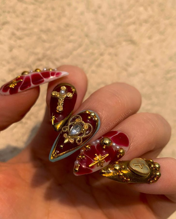 Корейские девушки обожают экспериментировать с нейл-артом и постоянно придумывают что-то новое, смешивая различные стили и экспериментируя с покрытиями и цветами. Потом эти тренды обретают невероятную популярность по всему миру. Одно из последних изобретений корейских мастеров — ногти-шпильки. В центре каждого ногтя рисуют широкую полосу контрастного цвета, которая напоминает высокий каблук. Это выглядит очень необычно и свежо