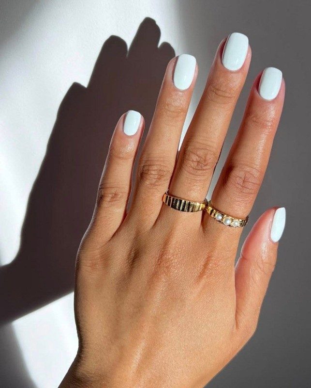 Белый цвет часто смотрится наряднее, чем нюд, и является прекрасным выбором для тех, у кого смуглая кожа. На бледной коже рук предпочтительнее бежевые и кремовые оттенки с розовым подтоном.