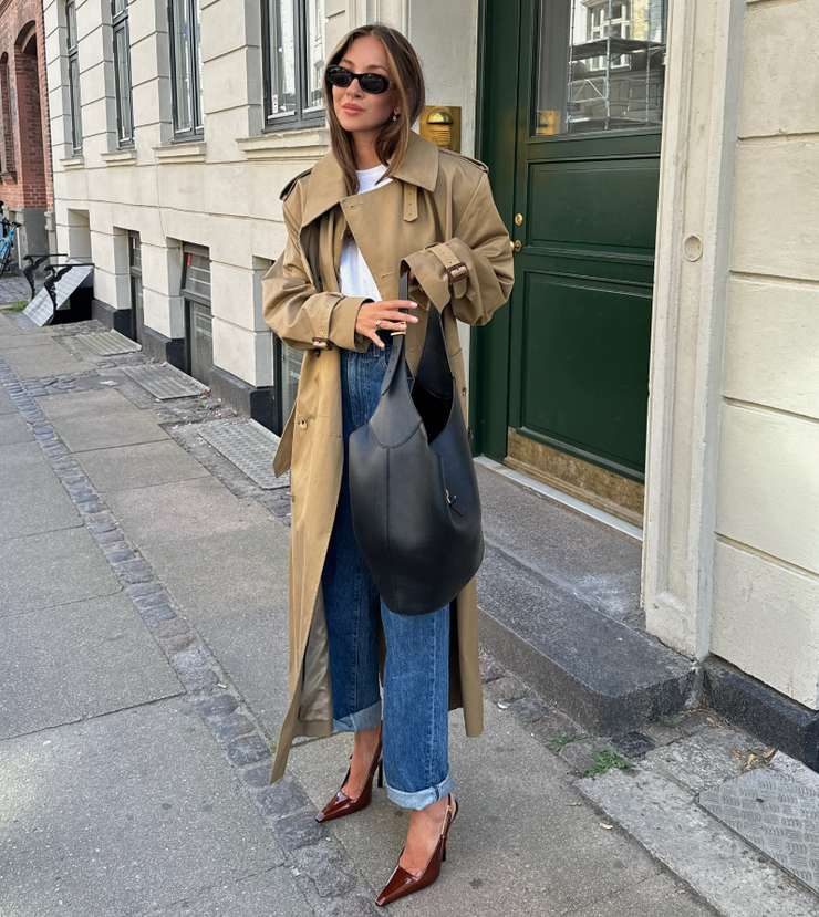 Тренч дает ту самую вертикаль, которая вытягивает силуэт и объединяет слои. В дождливый день он держит форму, в сухую погоду становится рамой для всего, что под ним. С джинсами и кедами это городская повседневность, с черной базовой водолазкой и острым носком — уже собранный образ на встречу. Рукава можно немного закатать и показать браслет или часы, пояс завязать свободным узлом, полы оставить распахнутыми для движения. Это верхняя одежда, которая не спорит ни с возрастом, ни с профессией, ни с остромодными трендами.