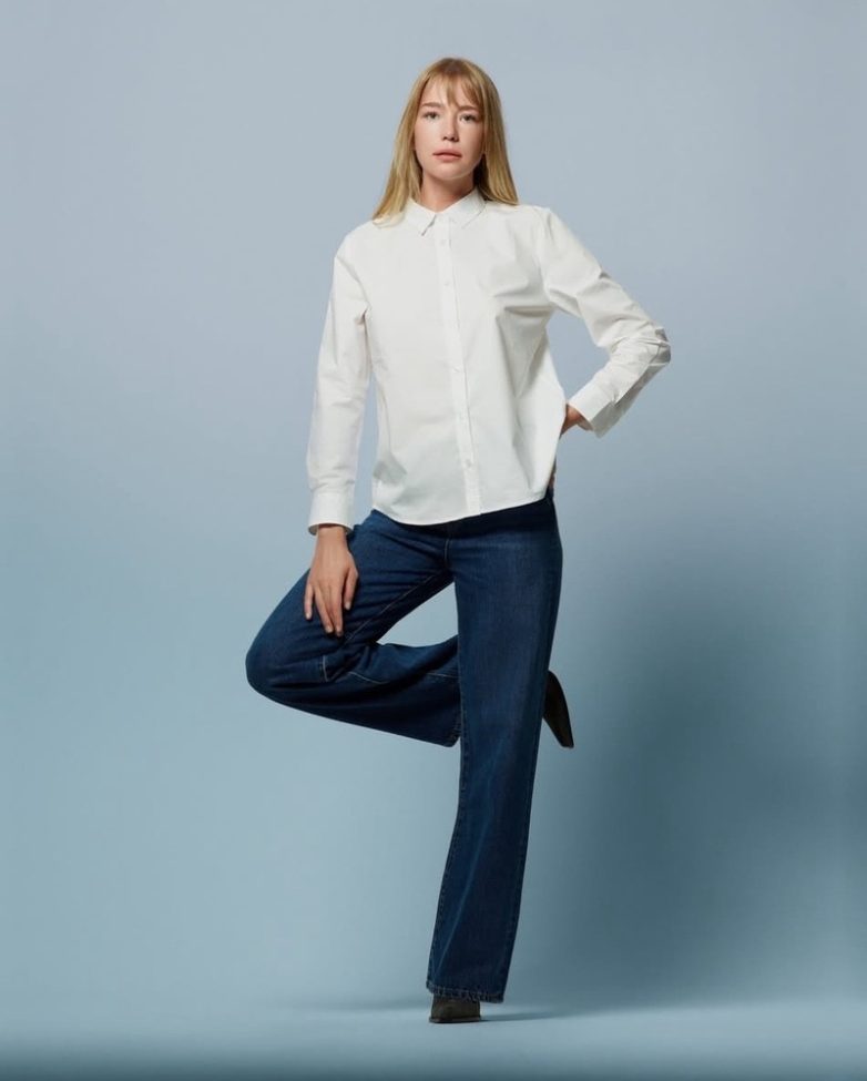 5. Джинсы straight или wide leg в темном дениме. Удобная посадка, которая балансирует объем верха. С свитером и ботинками — повседневный шик, с рубашкой — smart casual.
